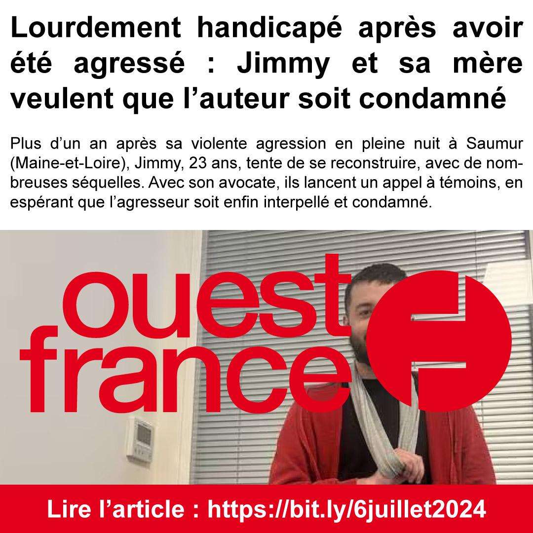 Suite à la diffusion de l’émission Appel à Témoins ce mardi 20 janvier sur M6, revenant sur l’agression violente du jeune Jimmy Le Pivert le 6 juillet 2024, nous exprimons toute notre émotion et notre soutien à Jimmy et sa famille.