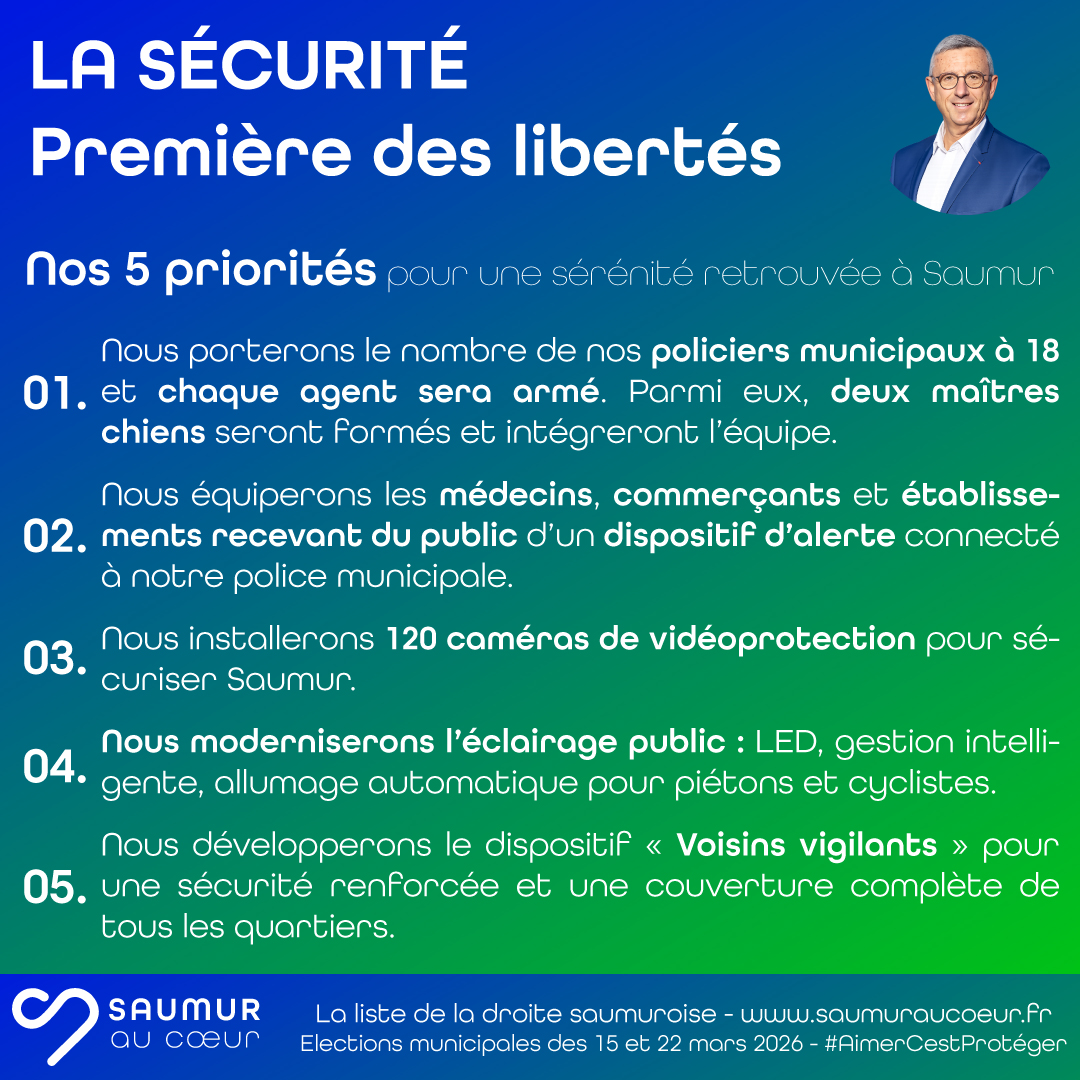 Saumur au coeur, la liste pour une véritable alternance à Saumur vous présente 5 mesures sécurité chiffrées pour Saumur