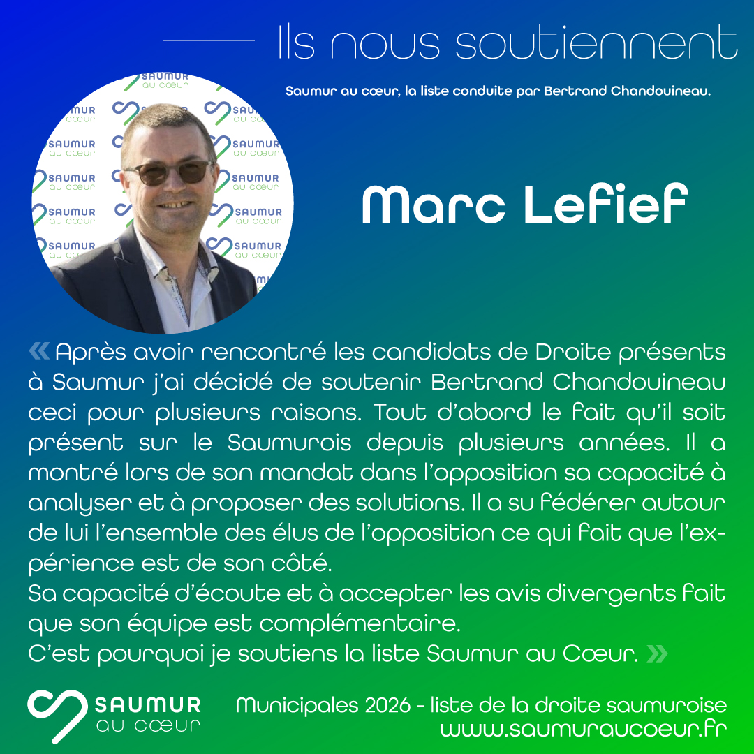 Nous avons le plaisir de compter Marc Lefief parmi nos soutiens !